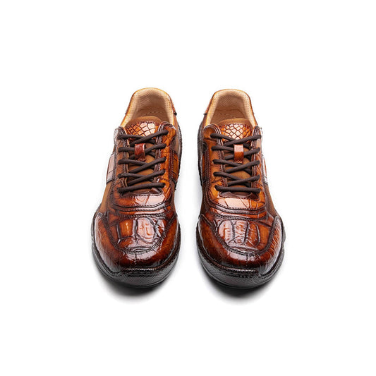 Crafton Heritage Premium Men's Summer Genuine Crocodile Leather Breathable Comfortable Stylish Trendy Casual Versatile Platform Clunky Sneakers