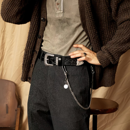 Vintage Western Belt w/ Embossed Buckle for Men | Handcrafted Genuine Leather Business & Casual Belts