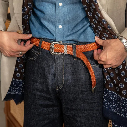 Unisex Fashion Vintage Braided Cowhide Belt | Genuine Leather with Titanium Forged