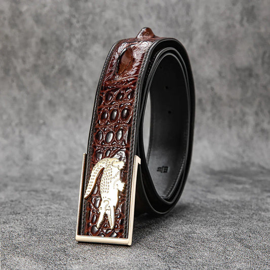 New Luxury Crocodile Bone Belt – Business & Casual Men's Leather Strap with Embossed Pattern