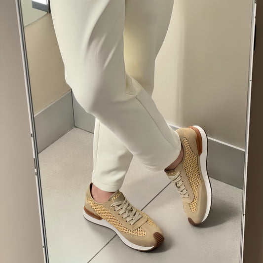 Woven Breathable Mesh Casual Sneakers for Summer 2025 | Genuine Leather & Retro Style