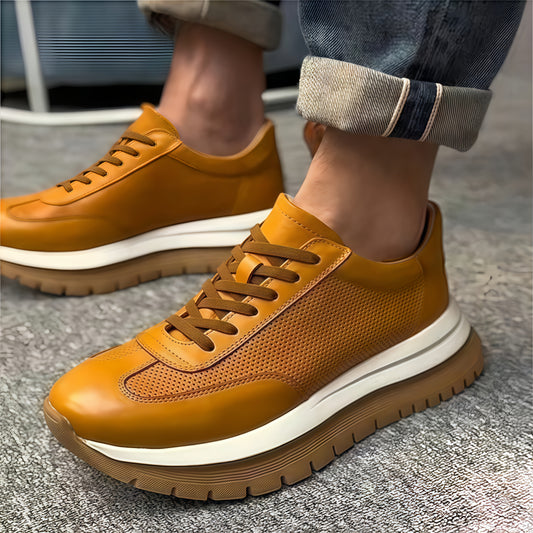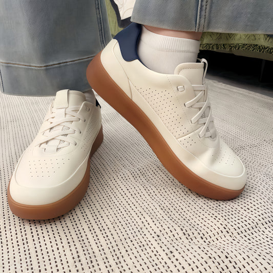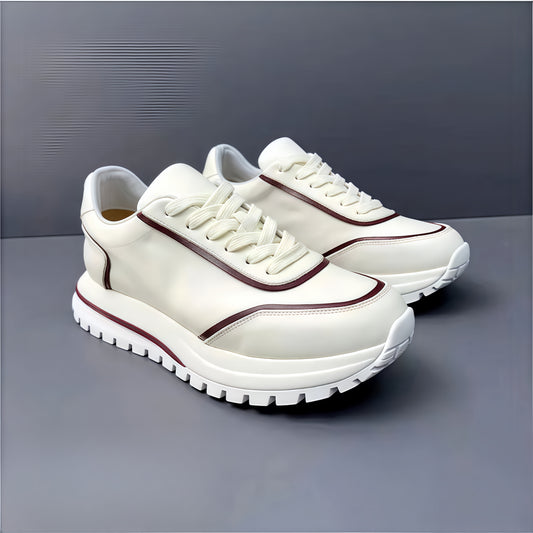 Calveto Men's Cowhide Casual Retro Style White Sneakers 2025 Summer | Thick-soled Light-Weight Breathable Luxury Design