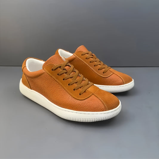 Calveto Men's Cowhide Round Toe Retro Style Shoes 2025 Summer | Light-Weight Breathable Sports & Leisure Sneakers