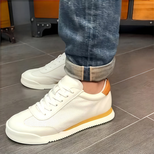 Calveto Men's Genuine Leather Versatile Casual Sneakers | Lightweight & Breathable White Sneakers for Summer 2025