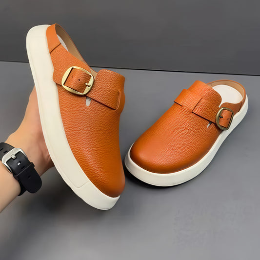 Calveto Leisure Fashion Outdoor Wear 2025 Summer | Genuine Leather Wrapped Head Half Slippers